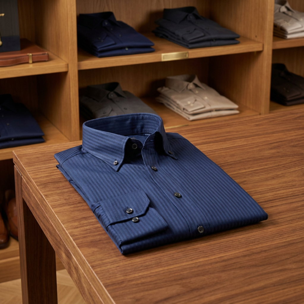 Subtle vertical striping enhances the profile in a discreet, elegant way, naturally elongating the silhouette. The tailored cut creates a streamlined fit that pairs effortlessly with trousers, denim, or layered outerwear — transitioning seamlessly from professional settings to elevated casual occasions.