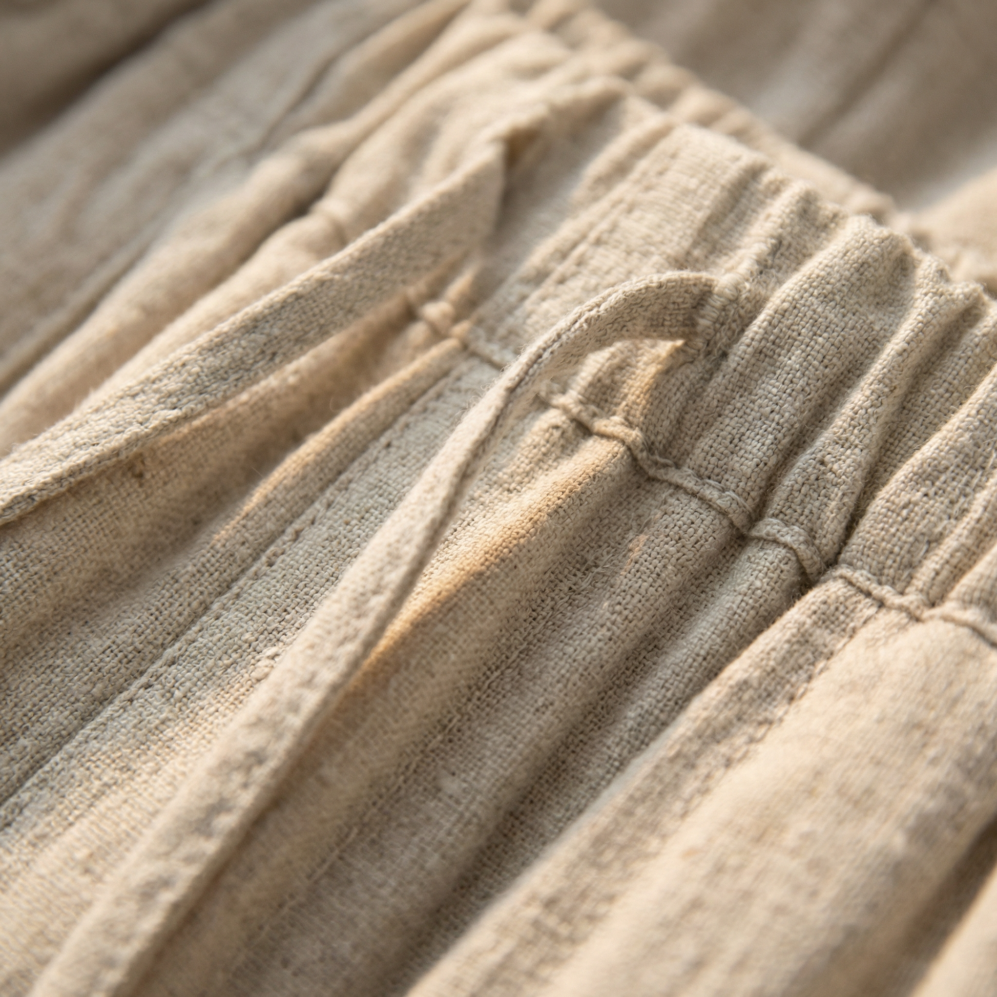 The lightweight construction enhances breathability and comfort, while the elasticated waistband with drawstring ensures an easy, adaptable fit throughout the day. Clean lines and minimal detailing reinforce a timeless aesthetic — understated, functional, and seasonless.