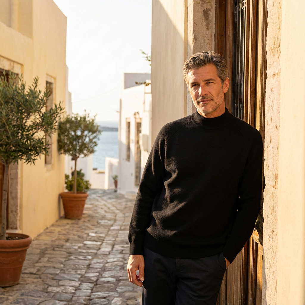 This is an easy piece to style with tailored trousers, wool pants, or denim, fitting naturally into a modern and understated wardrobe. Made for men who value simplicity, consistency, and timeless design rather than trends, it’s the kind of sweater you reach for again and again.